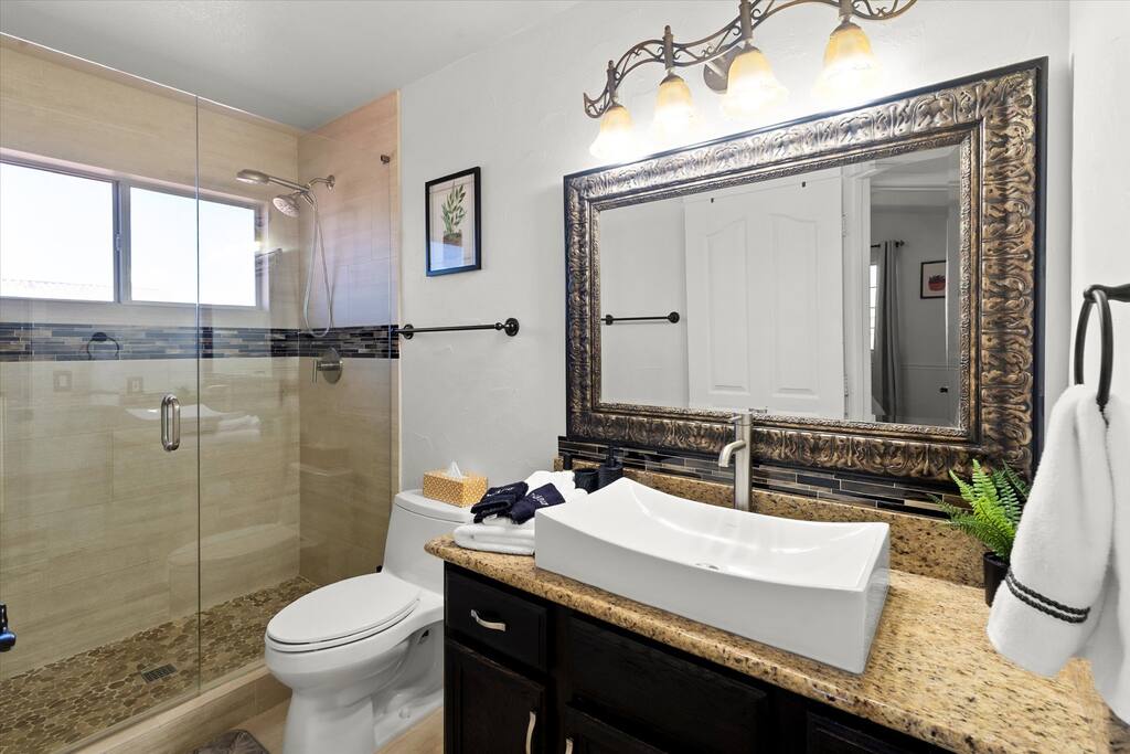 ✦ What our guests love about our listing: ✦ -Amazing backyard: Pool, loungers, BBQ grill, misters, & plenty of outdoor seating and shade. -Family friendly - quiet & safe neighborhood -Check-in process: Key entry with code -Parking: Available parking in driveway and garage -Office space: Cozy desk + chair -Fully equipped kitchen (toaster, tea kettle, blender, wine glasses, etc.) -Coffee station: Keurig w/ free grounds & K cups provided -Comfortably sleeps up to 10 guests (1K, 3Q, 1sleeper couch) -Laundry: In unit washer and dryer -Lightning-fast WiFi -Large 65” TV in Living Room and Front Room, 55” in Master Suite and 43” in three guestrooms. -HUGE King Bed in Master Suite with luxurious sheets -Professionally cleaned and sanitized between each and every guest. Centrally located close to freeways (101 and 202), minutes to downtown Chandler and Chandler Mall! Our home is a short drive to most major attractions within the Phoenix Valley. Approximate Travel times: ➤ Sloan Park - 16 Minutes ➤ Arizona State University - 19 Minutes ➤ Phoenix Sky Harbor Int. Airport - 20 Minutes ➤ Mesa Gateway Airport - 22 Minutes ➤ Phoenix Zoo - 23 Minutes ➤ Salt River Field - 24 Minutes ➤ Chase Field (Diamondbacks) - 28 Minutes ➤ PHX Arena (Suns) - 30 Minutes ➤ Camelback Mountain - 33 Minutes ➤ State Farm Stadium (Cardinals) - 45 Minutes